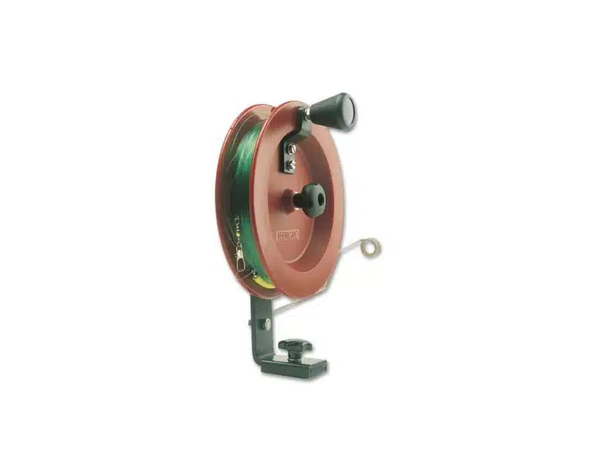 Hitra Fiskehjul kompl. m/kroker – Et solid fiskehjul med trommel i kraftig polyamid. Fiskehjulet har bremseratt, snørefører i rustfritt stål, og kommer med festebrakett og ferdig påmontert 200m 0,80mm sene og 2 stk. gummimakk #5/0. Et perfekt fiskehjul til lettere juksafiske. Fiskehjulet er enkelt å montere med den medfølgende braketten i både fritidsbåt og fiskebåt.