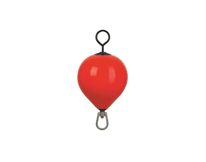 Benytt alltid øyet på undersiden til fortøyning, øyet på toppen er kun ment for å løfte bøyen og som ekstra sikring. Det er også viktig å huske på at rustfritt og galvanisert fungerer dårlig sammen, så bruk alltid galvaniserte sjakler.
