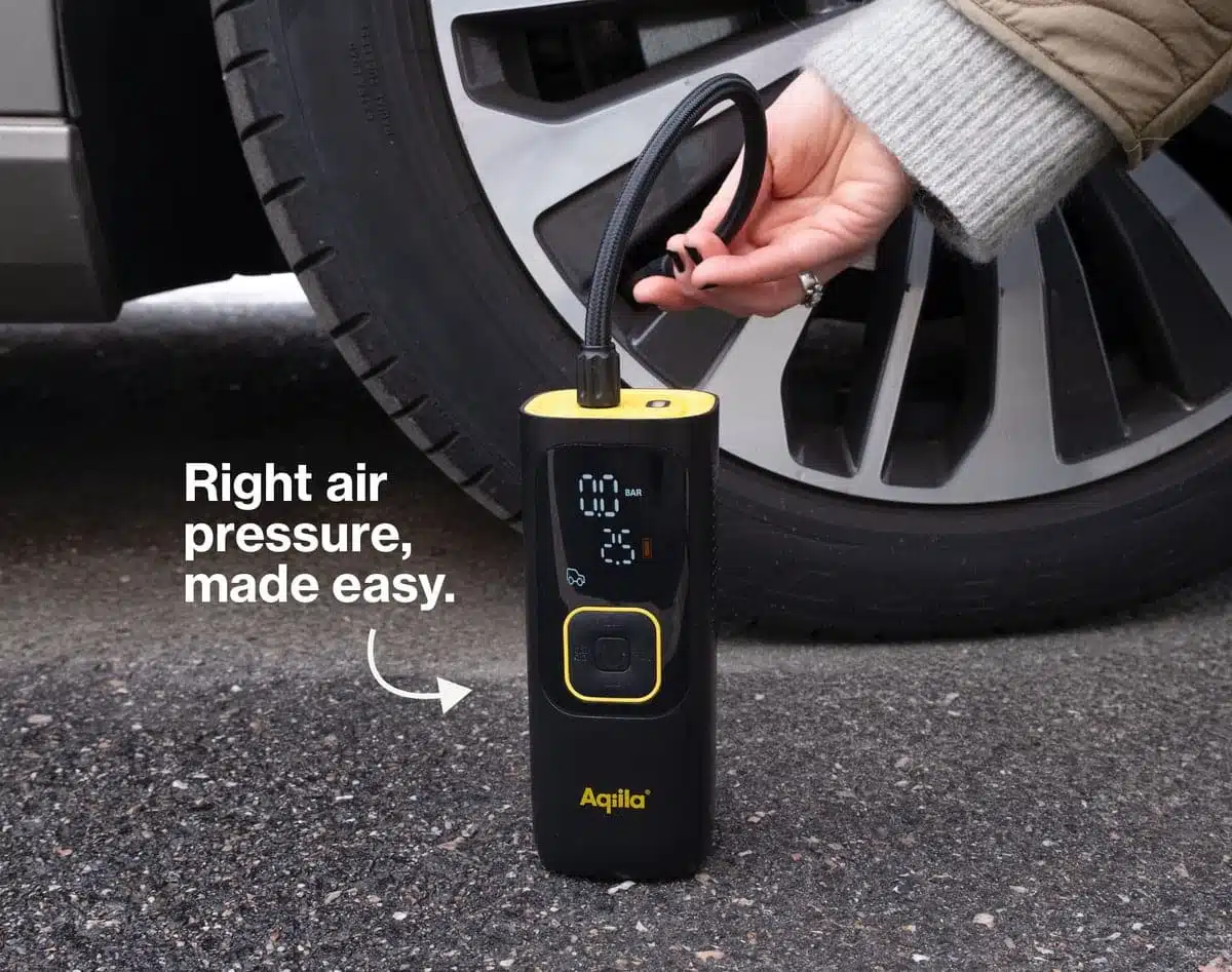 Aqiila Airbird C7 er en meget praktisk, oppladbar luftkompressor med innebygget powerbank (7500 mAh) og lommelykt. Luftkompressoren registrerer automatisk lufttrykket og stopper når ønsket trykk er oppnådd. Kapasitet til å pumpe opp 5 bildekk på ca. 6 min per dekk.