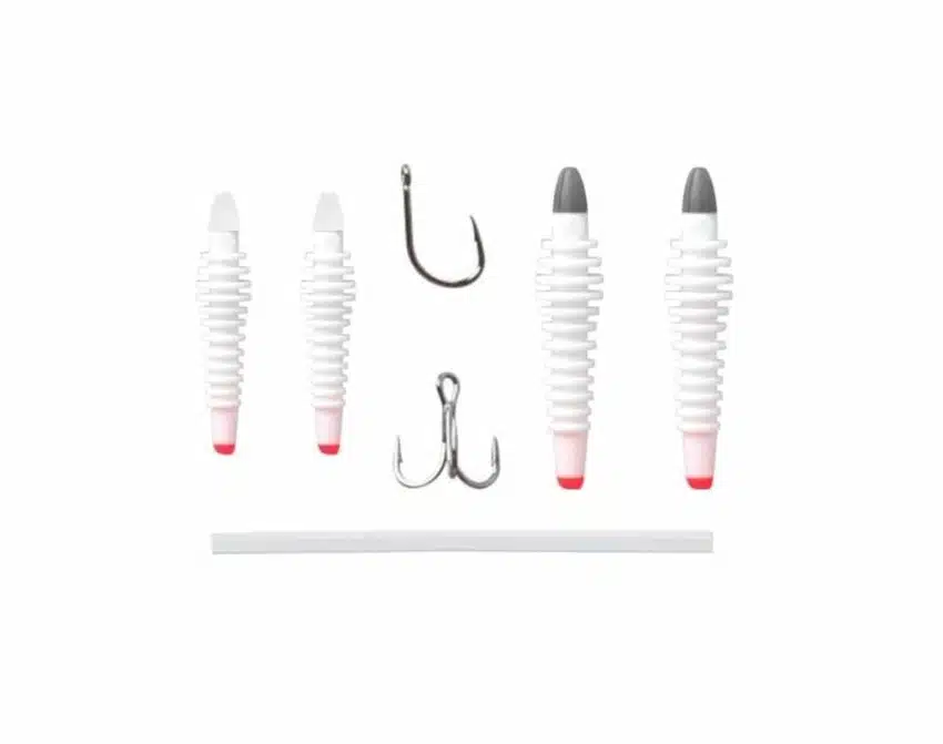 Trout Attack eller PowerBait presses fast i rillene på kjernen og krokene monteres enten som L-rig eller Rapala montage. I kombinasjon med INNO-TBH Form Spinner lager du et uimotståelig roterende spinnerblad på sekunder.