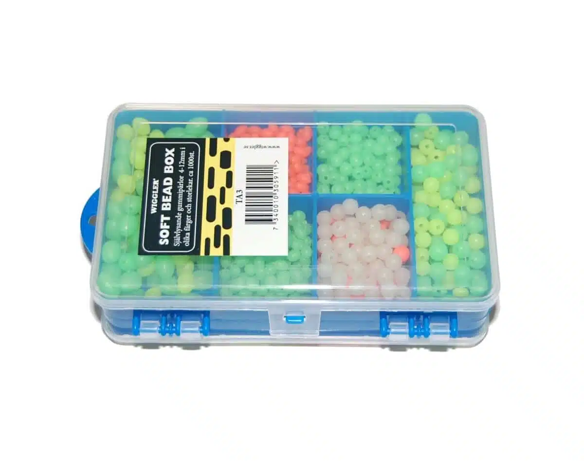Soft Beads Sortiment er gummikuler i fluoriserende farger og assorterte størrelser. Soft Beads er populære som støtdempere på forskjellige tackel for å beskytte knuter når man bl.a. bruker glidende søkker, bombarda og dupper m.m.