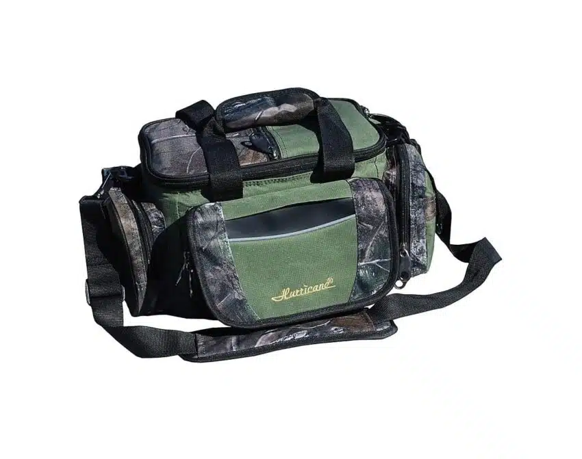 Hurricane fiskeveske er en praktisk veske, i et hendig format. Vesken har skulderrem med enkel polstring, bærehåndtak på topplokket og godt med lommer til fiskeutstyret.