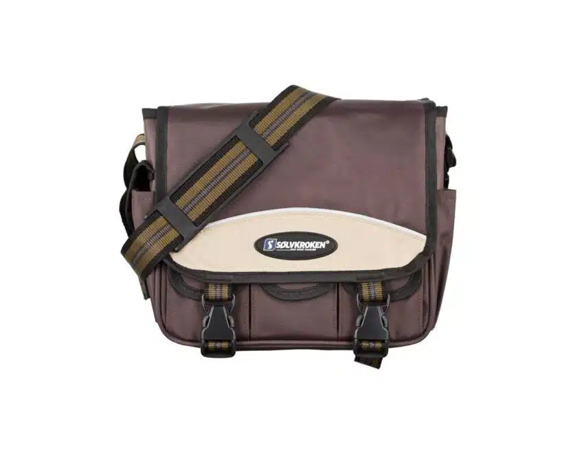 Sølvkroken liten fiskeveske er en liten, solid fiskeveske med ett hovedrom, to sidelommer og tre frontlommer. Produsert i slitesterk cordura og nylon. Coated innside gjør vesken vanntett og renholdet enklere.