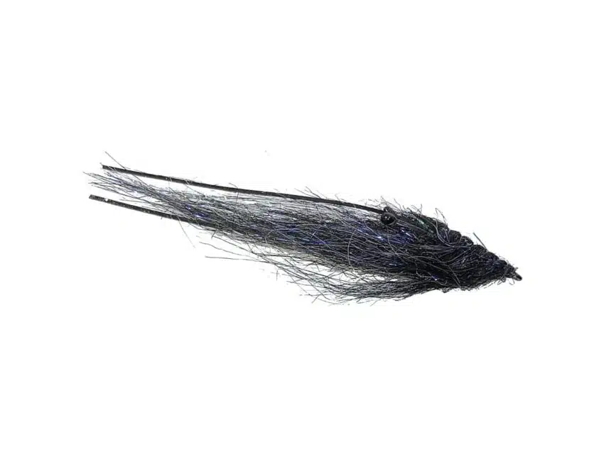 Pattegrisen Svart er en effektiv rekeimitasjon til kystens laks og sjøørret. Fluen er bundet på enkelkrok i #6.