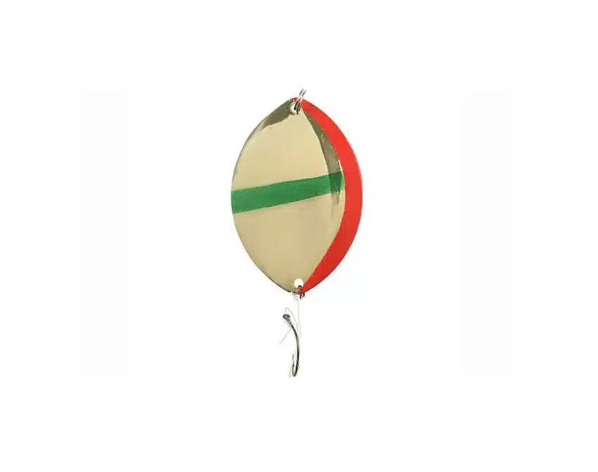 Javre 60mm – Gull er utviklet for nordisk isfiske. Klassiske farger, rødt innslag samt en grønn kontraststripe over blinken. Røyeblinken har en vekt på 14g, er 60mm lang og leveres i variantene sølv, gull og kobber. Ferdig montert fortom m/agnkrok.