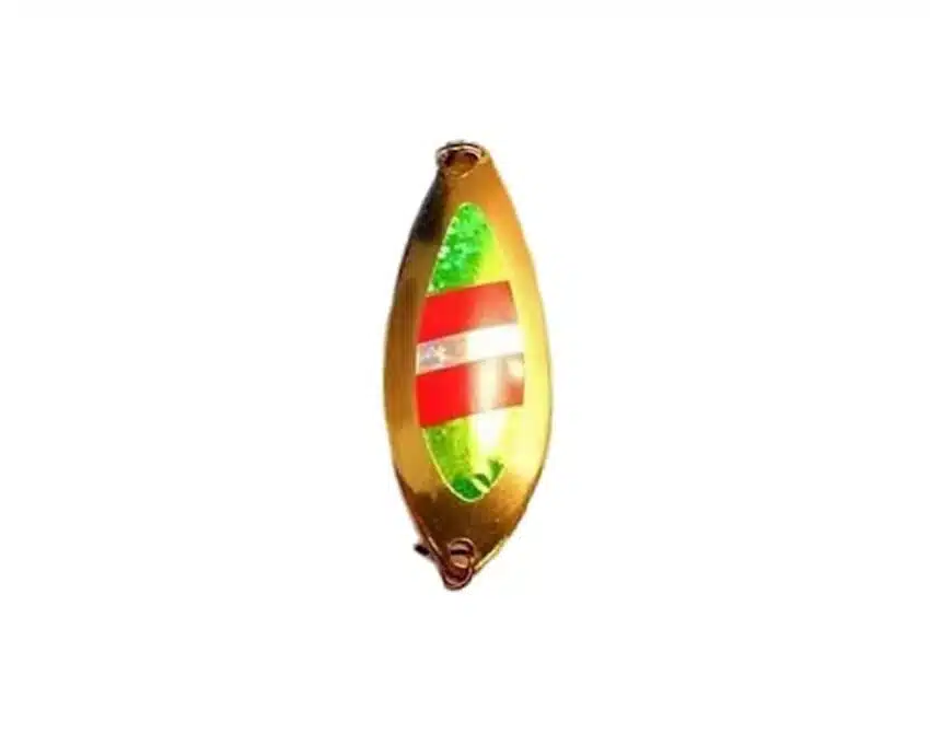 Polaris 57mm Grønn – Gull er en gammel klassiker som fisker godt, spesielt når det kommer til røyefiske men også godt egnet til abbor og ørret. Fine og lokkende bevegelser i vannet. Blinken har en vekt på 10g, er 57mm lang og leveres i fargene fasett/sølv, rød/kobber og grønn/gull. Kommer med fortom og agnkrok.