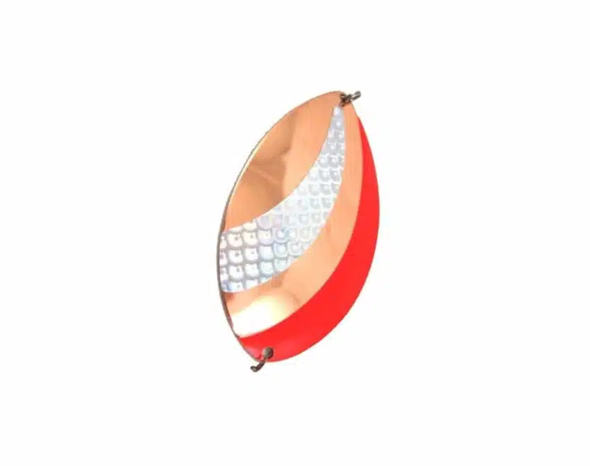 Ritsem 70mm Rød – Kobber er et uunværlig røyeblink, spesielt når det kommer til røyefiske. Blinken har en vekt på 16g, er 70mm lang og leveres i fargene sølv, kobber og gull. Ferdig montert fortom m/agnkrok.