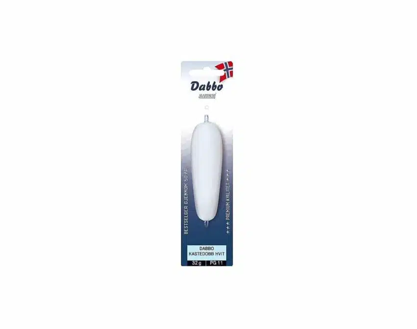 Dabbo Kastedupp – 32g er en klassisk plastdupp for fiske med mark og flue. Prøv å montere to fluer foran duppen, det gir fluene en ekstra fin gange. Dabbo Dobben ble utviklet og produsert i Bergen for over 50 år siden og ble raskt den mest solgte duppen i Norge.