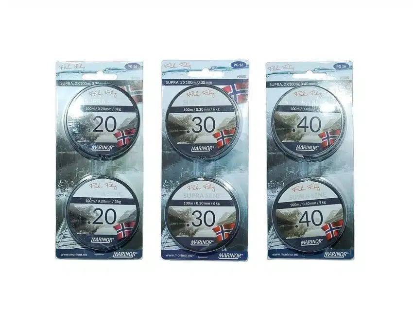 Marinor Supra er en allround sene med høy brudsstyrke og god kvalitet. Senen kommer på 2 spoler à 100m – totalt 200 meter sammenhengende sene.