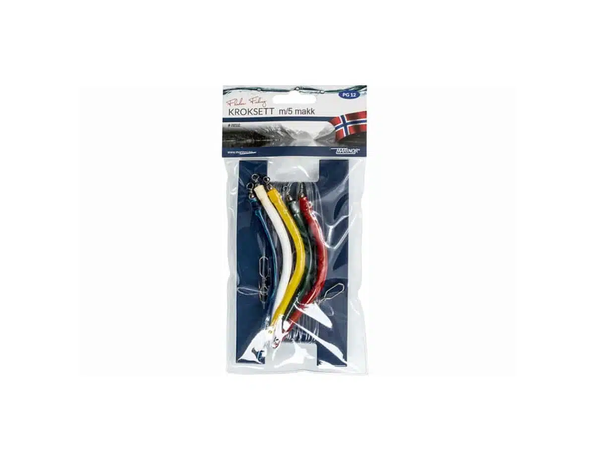 Kroksett Marinor m/5 gummimakk til fiske etter torsk, lyr og hyse. Et klassisk kroksett til fiskeharper og jukser.