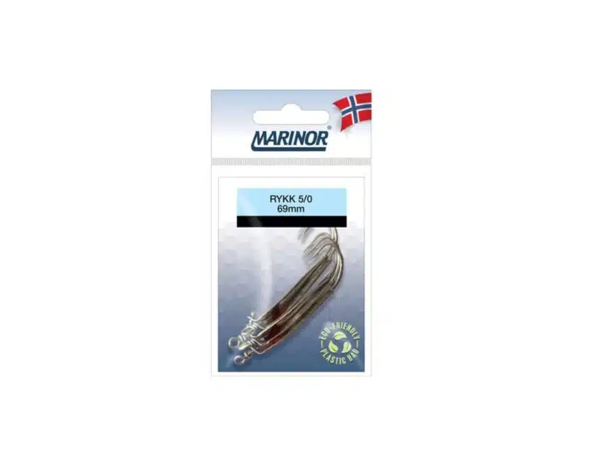 Seirykk med mustadkrok – 5/0 er et klassisk rustfritt rykk med en lengde på 69mm, attraktiv gange og blank/rød overflate. Høy kvalitet og finish med kvalitetskrok fra Mustad. Leveres i pakning à 5 stk.