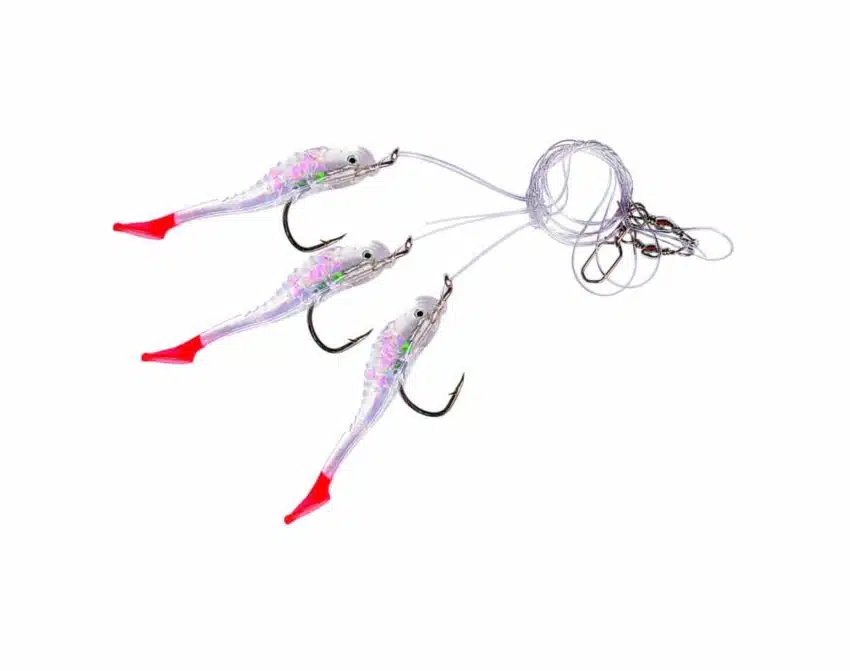 Torsk, Lyr og Hyse Hekle kommer med 3 stk krok påmontert transparante fiske imitasjoner. Et hekle som egner seg godt når du er ute etter torsk, lyr eller hyse.