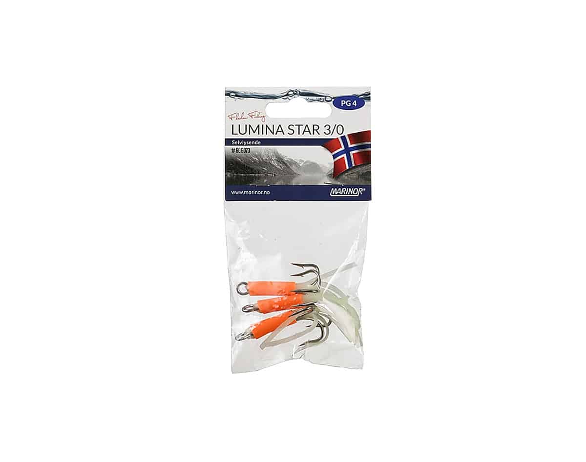 Treblekrok Lumina Star fra Marinor er en solid og rimelig treblekrok med selvlysende attraktor. Skift ut dreggen på pilkene med Lumina Star og merk forskjellen når den selvlysende attraktoren lokker til hugg.