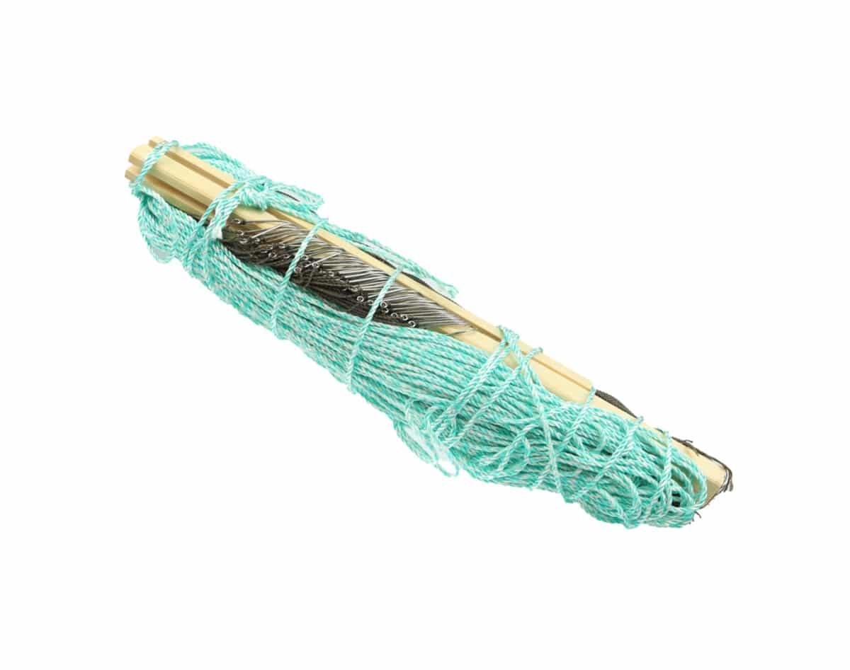 Sette linen med tau fra land – fest lina i land med iletau og stein i motsatt ende. Bruk gjerne noe tau/snøre inne ved land, slik at settingen begynner på en ønsket dybde.