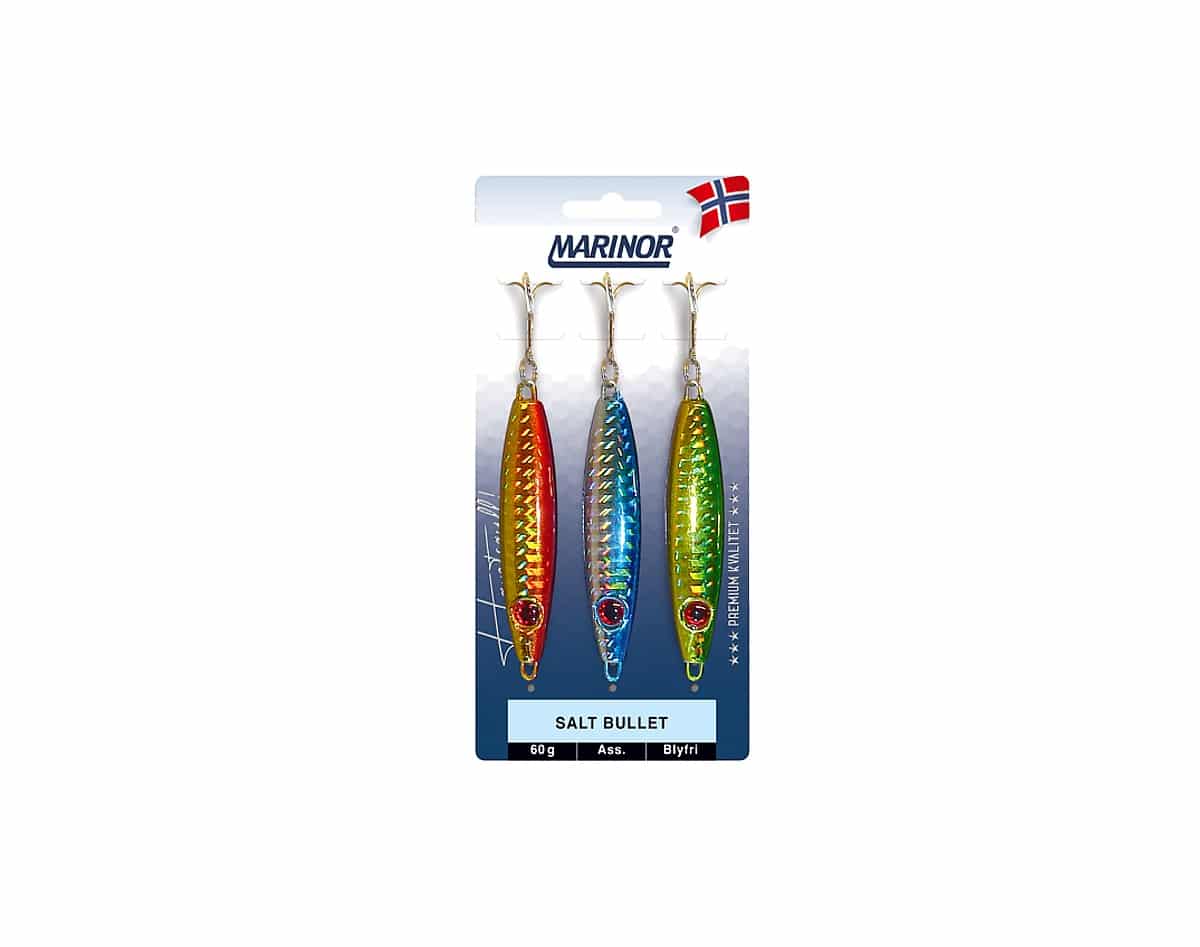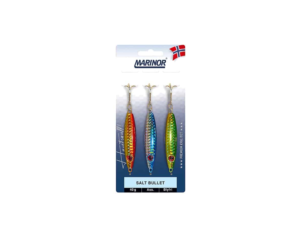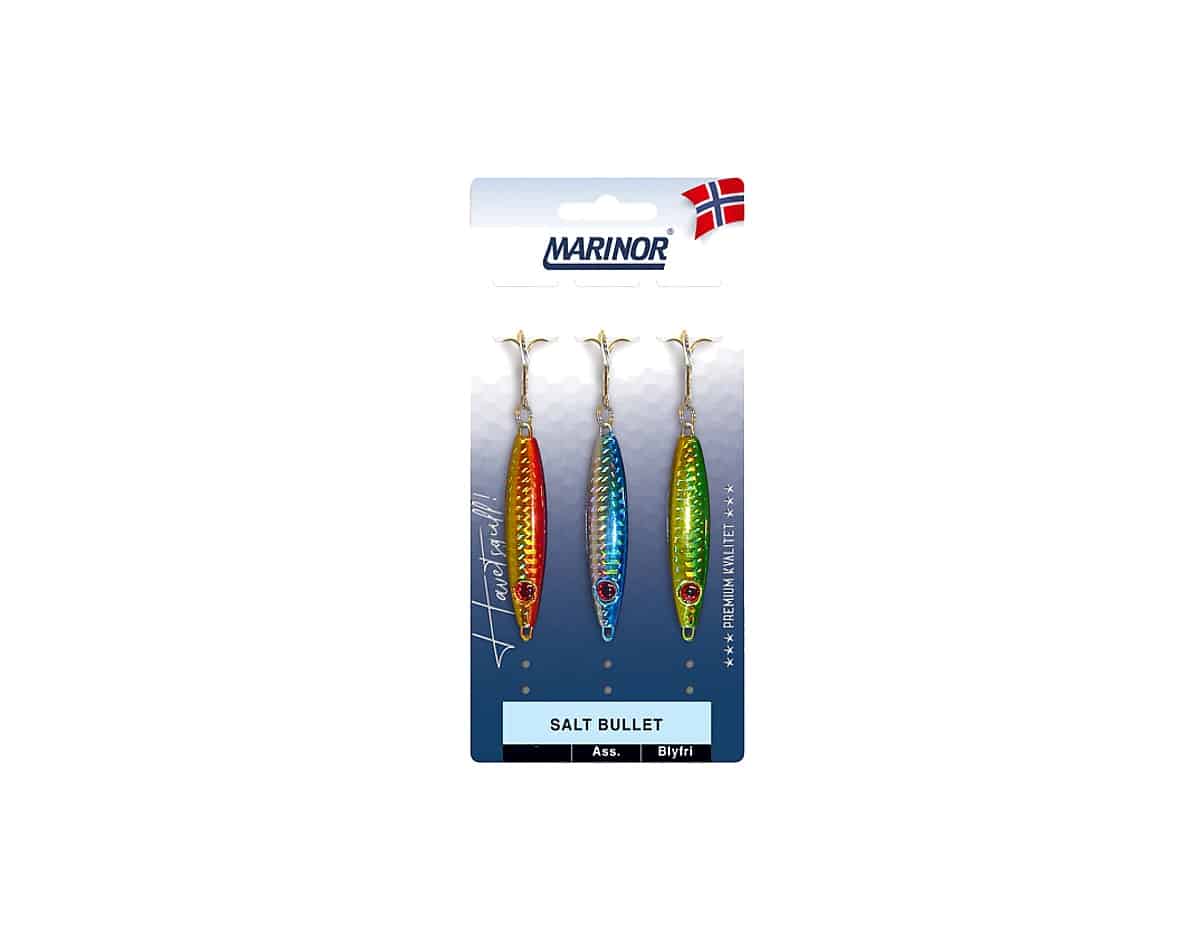 Salt Bullet Flecto – 3pk er et premium sluksett i assorterte flectofarger. Flectofinish og levende øynene gjør at hver enkelt sildesluk holder en høy kvalitet og finish. Blyfrie og langtkastende sildesluker i uimotståelige farger, spesielt for torsken.