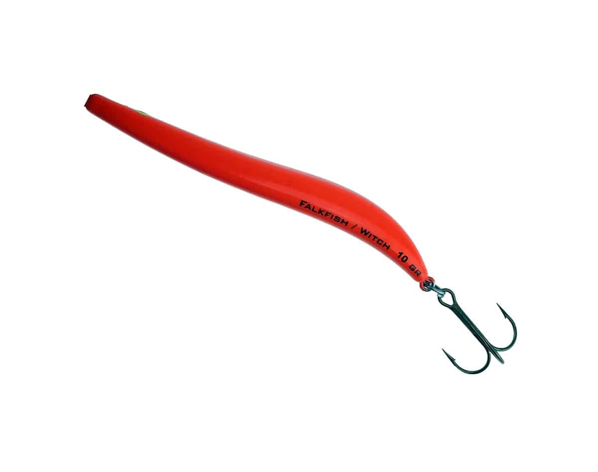 Falkfish Witch – 20 har med sin lange og lett buede kropp en gange som simulerer tobis og sild. Formen gir også svært gode kasteegenskaper, og den håndmalte kroppen i slagfast ABS kombinert med sylskarp krok fra WMC gjør Witch til en favoritt i jakten etter sjøørret.