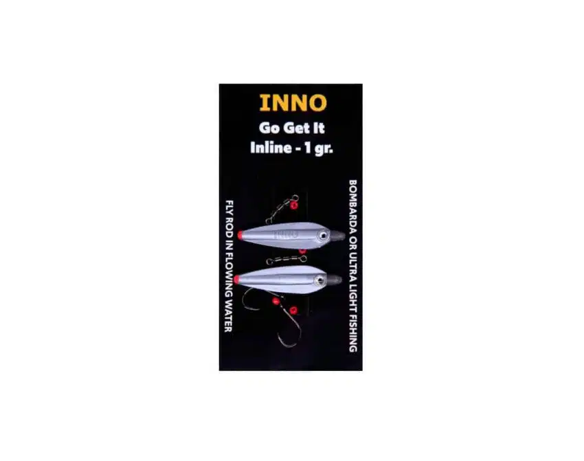 INNO Go Get It er en 3,6cm lang gjennomløper (inliner) med tungstens hode og gummiende til beskyttelse av knuten, veier kun ètt gram og kan derfor fiskes veldig sakte med små rykk eller hurtig med spinn-stopp på kysten etter bombarda duppen. Den er suveren også på fluestang i rennende vann hvor den går superfrekt, helt annerledes enn flue. Go Get It blir ditt nye våpen til vanskelig fisk.