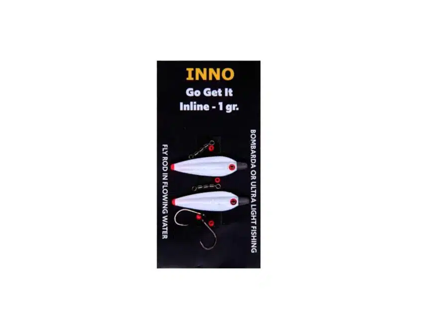 INNO Go Get It er en 3,6cm lang gjennomløper (inliner) med tungstens hode og gummiende til beskyttelse av knuten, veier kun ètt gram og kan derfor fiskes veldig sakte med små rykk eller hurtig med spinn-stopp på kysten etter bombarda duppen. Den er suveren også på fluestang i rennende vann hvor den går superfrekt, helt annerledes enn flue. Go Get It blir ditt nye våpen til vanskelig fisk.