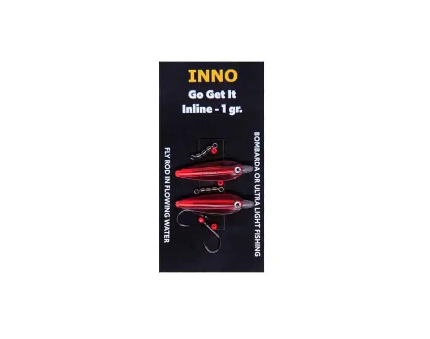 INNO Go Get It – Rød er en inliner sluk/spinner med egenskaper som gjør den meget godt egnet til bombardafiske etter sjøørret, ferskvannsfiske og isfiske, såvel som til fluestanga.