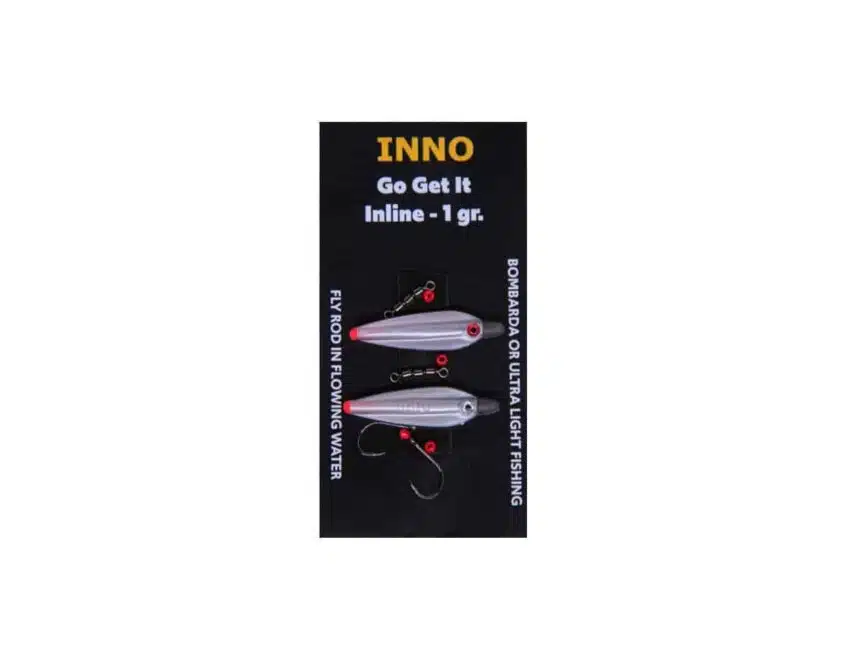 INNO Go Get It er en 3,6cm lang gjennomløper (inliner) med tungstens hode og gummiende til beskyttelse av knuten, veier kun ètt gram og kan derfor fiskes veldig sakte med små rykk eller hurtig med spinn-stopp på kysten etter bombarda duppen. Den er suveren også på fluestang i rennende vann hvor den går superfrekt, helt annerledes enn flue. Go Get It blir ditt nye våpen til vanskelig fisk.