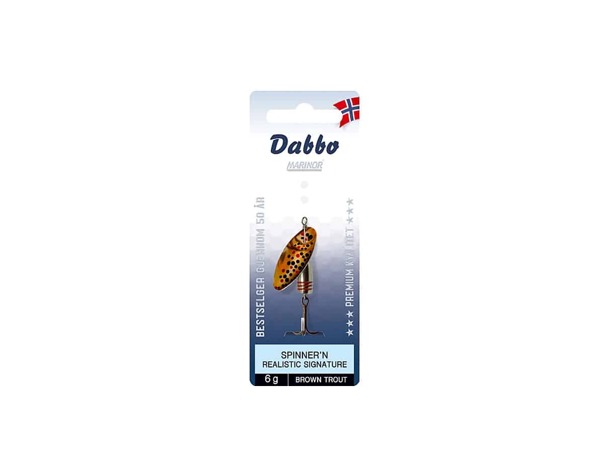 Spinner Realistic Signature Brown Trout – 6g er en dabbo spinner som er produsert slik at stammen går igjennom spinnerbladet. Fordelen med dette er at spinneren roterer også i svært lav fart.