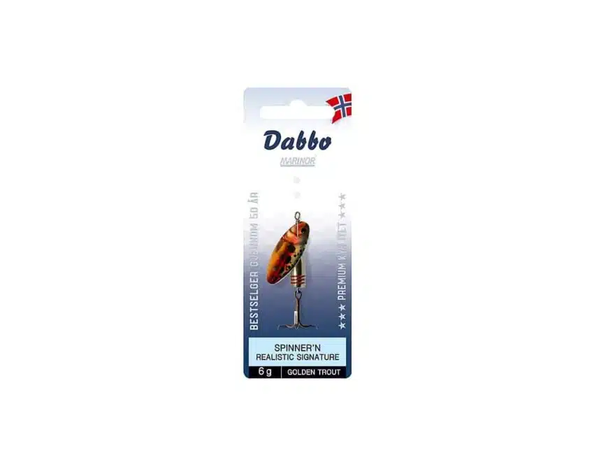 Spinner Realistic Signature Golden Trout – 6g er en dabbo spinner som er produsert slik at stammen går igjennom spinnerbladet. Fordelen med dette er at spinneren roterer også i svært lav fart.