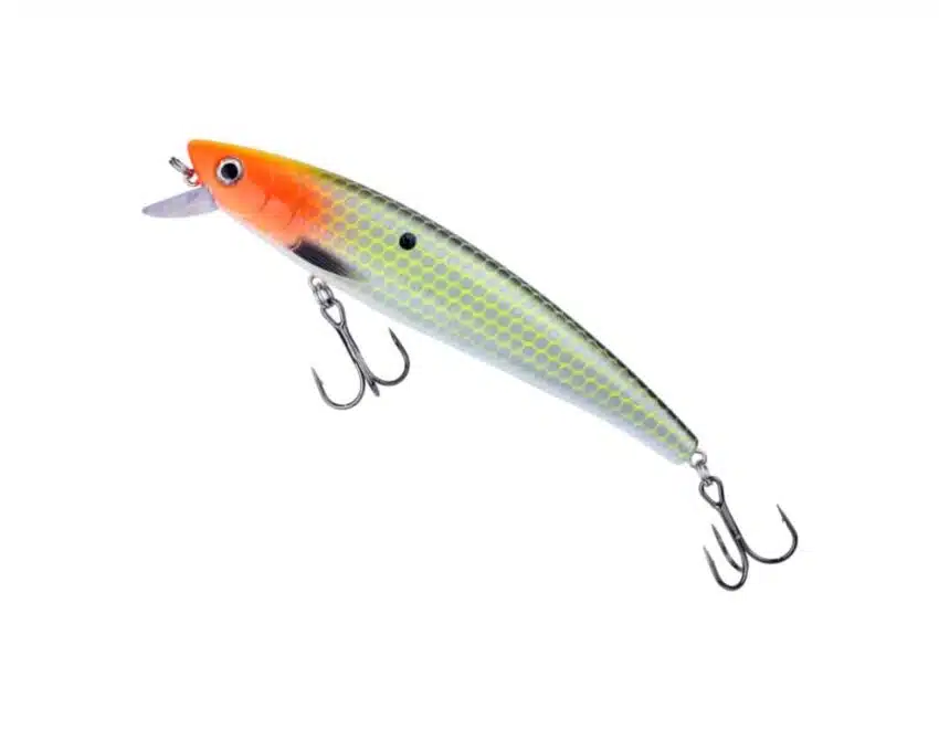 Hurricane Grimner HH – 70g er en lavt flytende wobbler med innlagt vekt av zink bak skjeen, fire raslekuler i samme kammer, og en bred men kort skje som bidrar til sikksakkgange samtidlig som den ruller kraftig fra side til side.