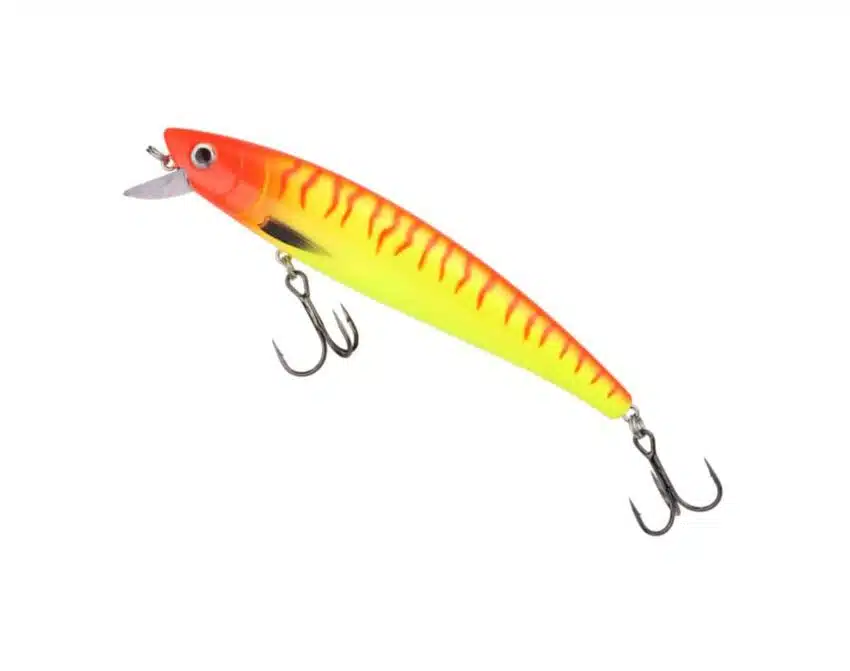 Hurricane Grimner SAL39 – 70g er en lavt flytende wobbler med innlagt vekt av zink bak skjeen, fire raslekuler i samme kammer, og en bred men kort skje som bidrar til sikksakkgange samtidlig som den ruller kraftig fra side til side.