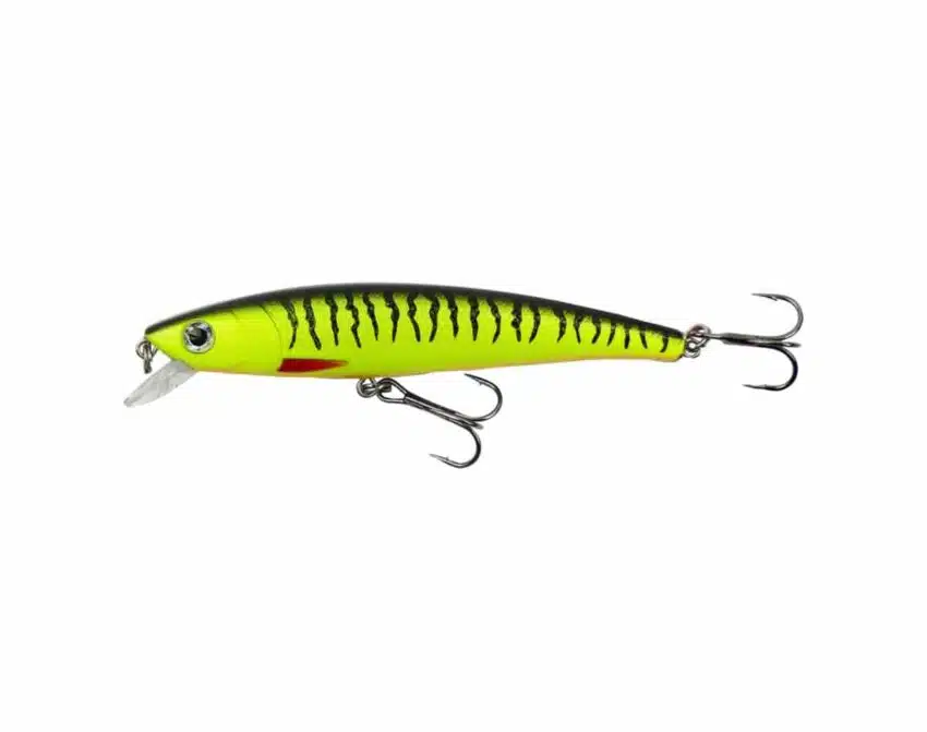 Hurricane Grimner Yellow Firetiger er en flytende wobbler med fire raslekuler i forskjellige kamre, og en liten skålformet skje som bidrar til en unik og uimotståelig gange. Den dykker ned til 0,5 – 1,5m avhengig av senens lengde, dimensjon og hastighet.