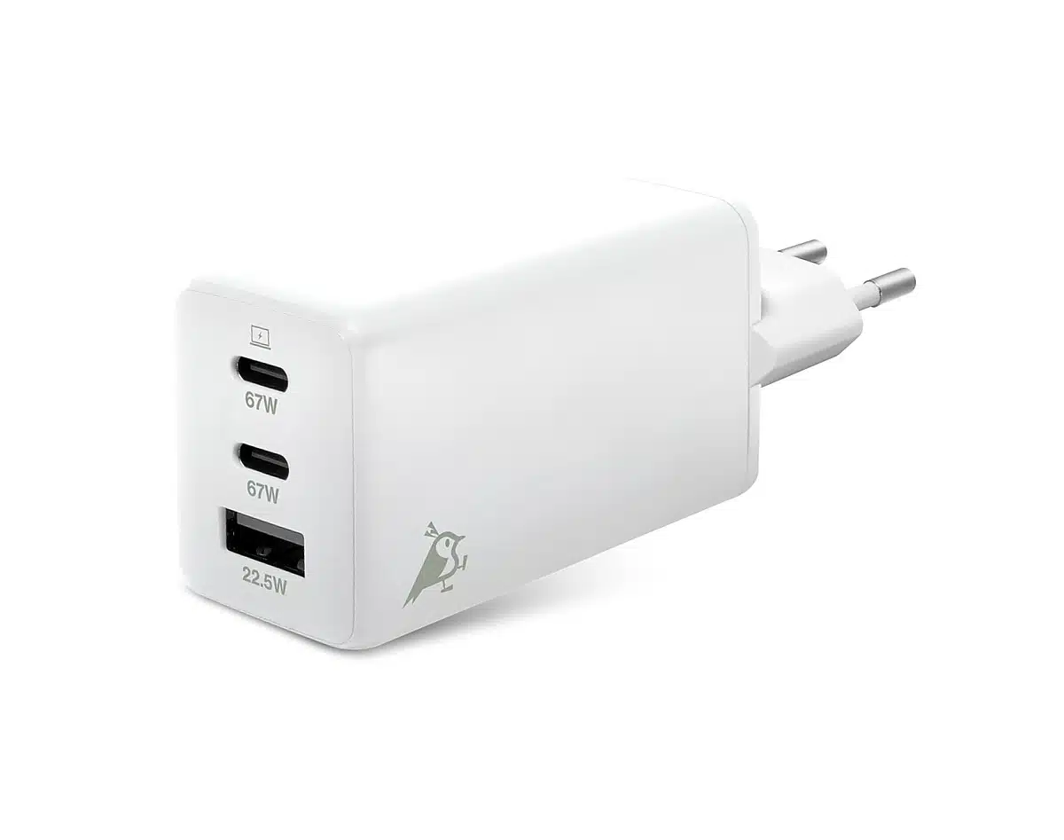 Agiila Chargebird W3 er en superrask USB vegglader med 2 x USB C og 1 x USB A utganger. Chargebird kan lade opptil 3 enheter samtidig, og kan også lade de fleste bærbare datamaskiner som støtter hurtiglading via USB C. Laderen støtter også «power delivery», og kan levere opp til 67w.