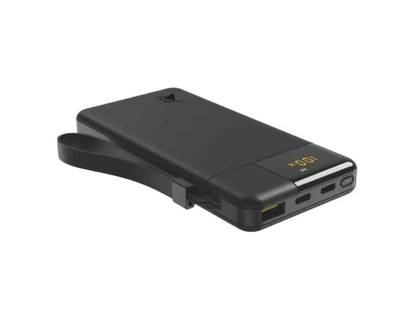 - Pakken inneholder: Powerbank, bruksanvisning, bærestropp, 30cm USB-C – USB-C-kabel.
