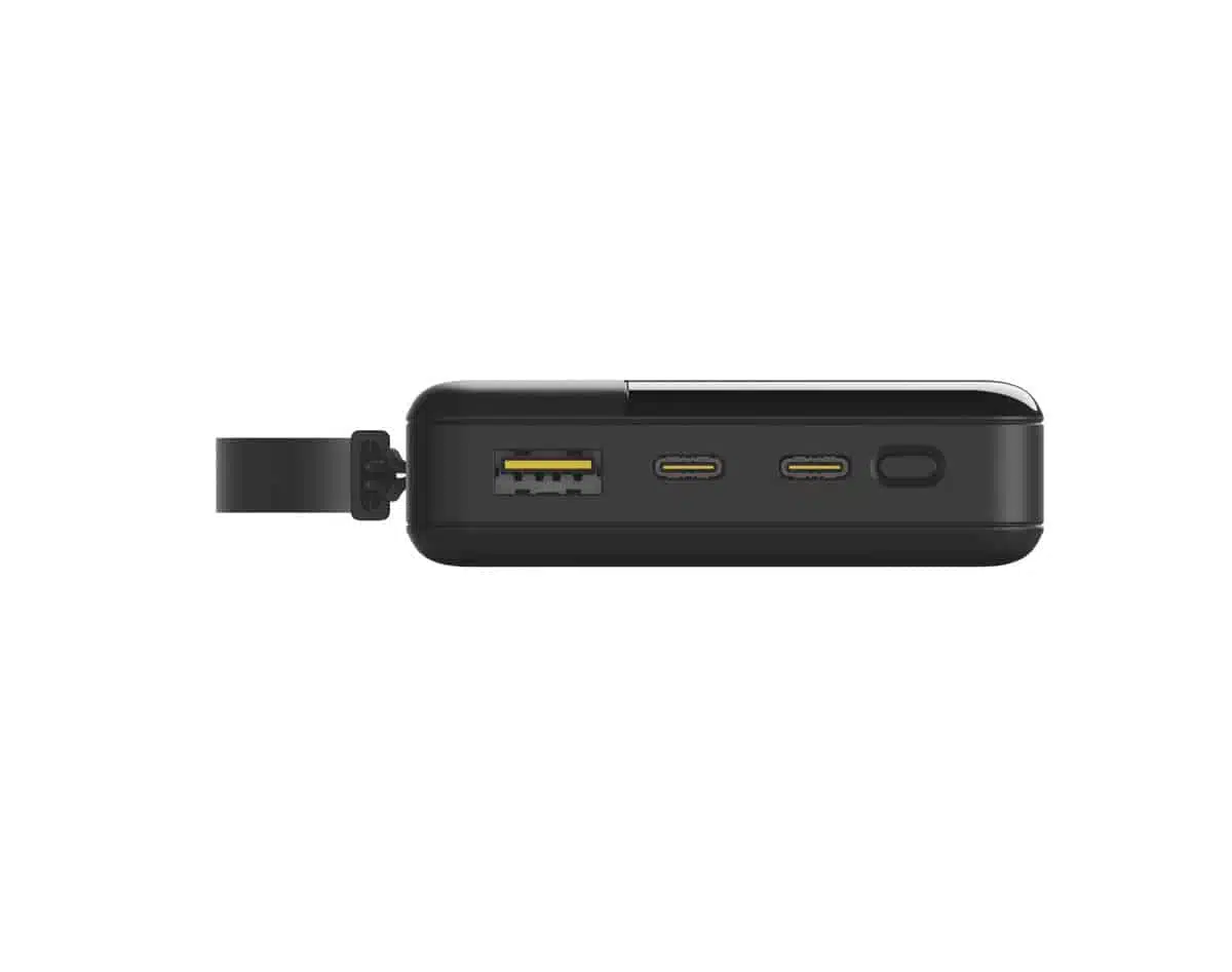 - Pakken inneholder: Powerbank, bruksanvisning, bærestropp, 30cm USB-C – USB-C-kabel.