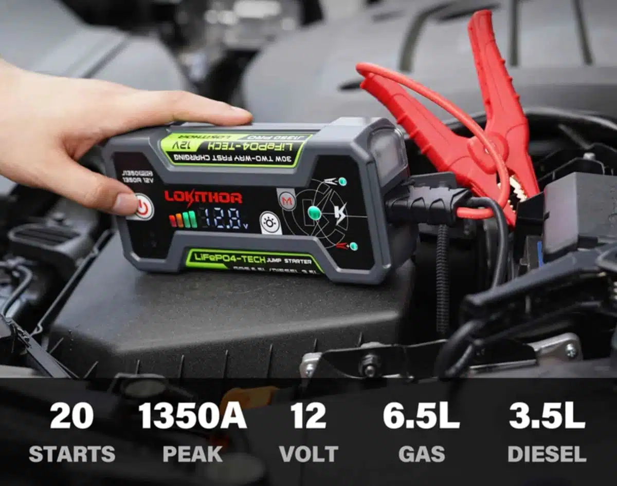 Startbooster Lokithor J1350 Pro er en innovativ starthjelp, designet for å gi deg pålitelig startstrøm under alle forhold. I tillegg fungerer den som powerbank for lading av telefon, PC og andre enheter via USB A (18W maks) og USB C PD (30W).