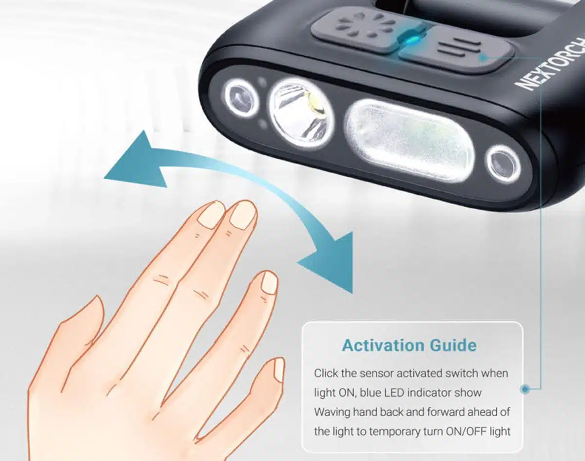 Smart sensor gjør at du enkelt kan slå på/av lyset ved å bevege hånden foran lyktehodet. Smart sensor funksjonen kan deaktiveres for å unngå at lykten slår seg på i ryggsekken etc.