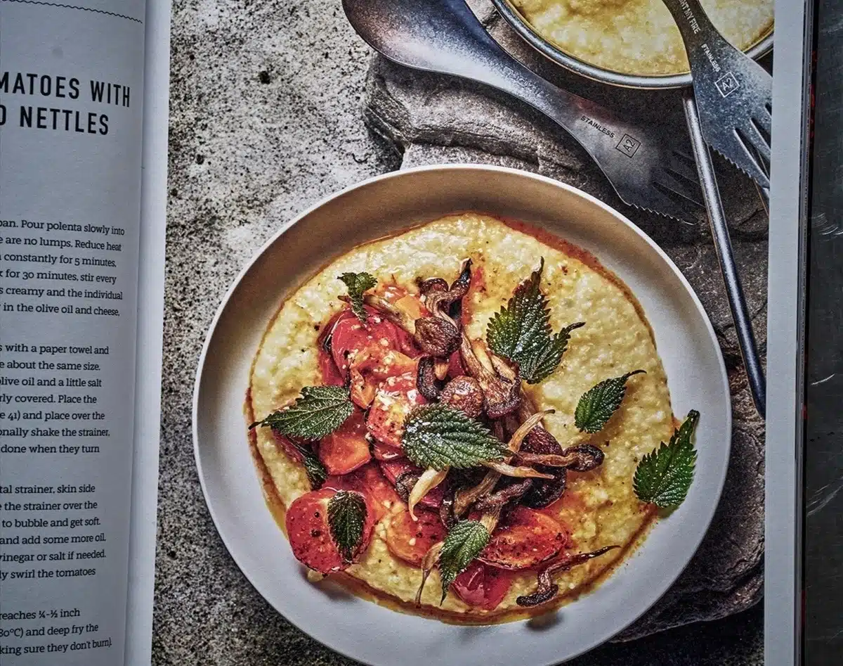 Matlaging under åpen himmel er en godt illustrert norsk kokebok med årstidene som kompass og den nordiske friluftstradisjonen i ryggen – full av oppskrifter for matlaging over åpen ild, hele året.