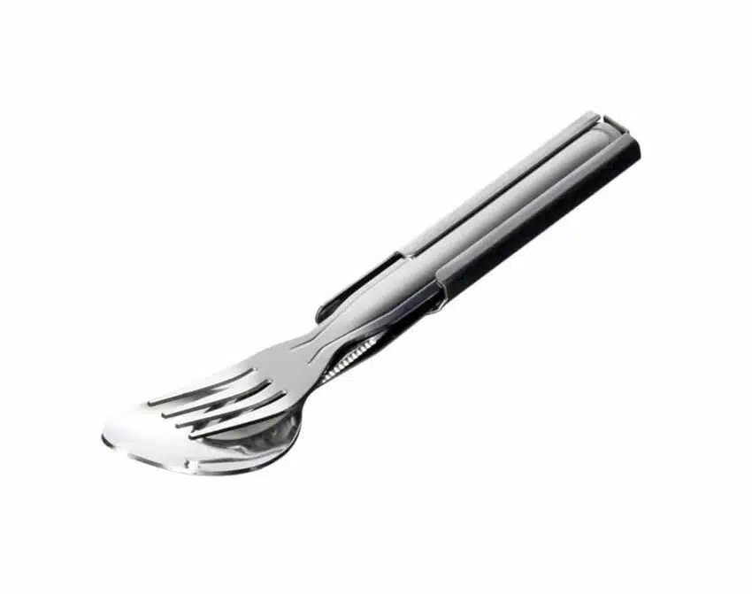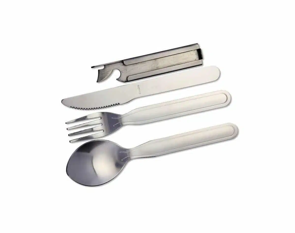 KFS Turbestikk m/boksåpner fra BCB er et kompakt bestikk laget i rustfritt stål. KFS turbestikk består av skje, gaffel, smørkniv, flaske- og boksåpner, som enkelt kan settes sammen til en enhet med en vekt på kun 140g.