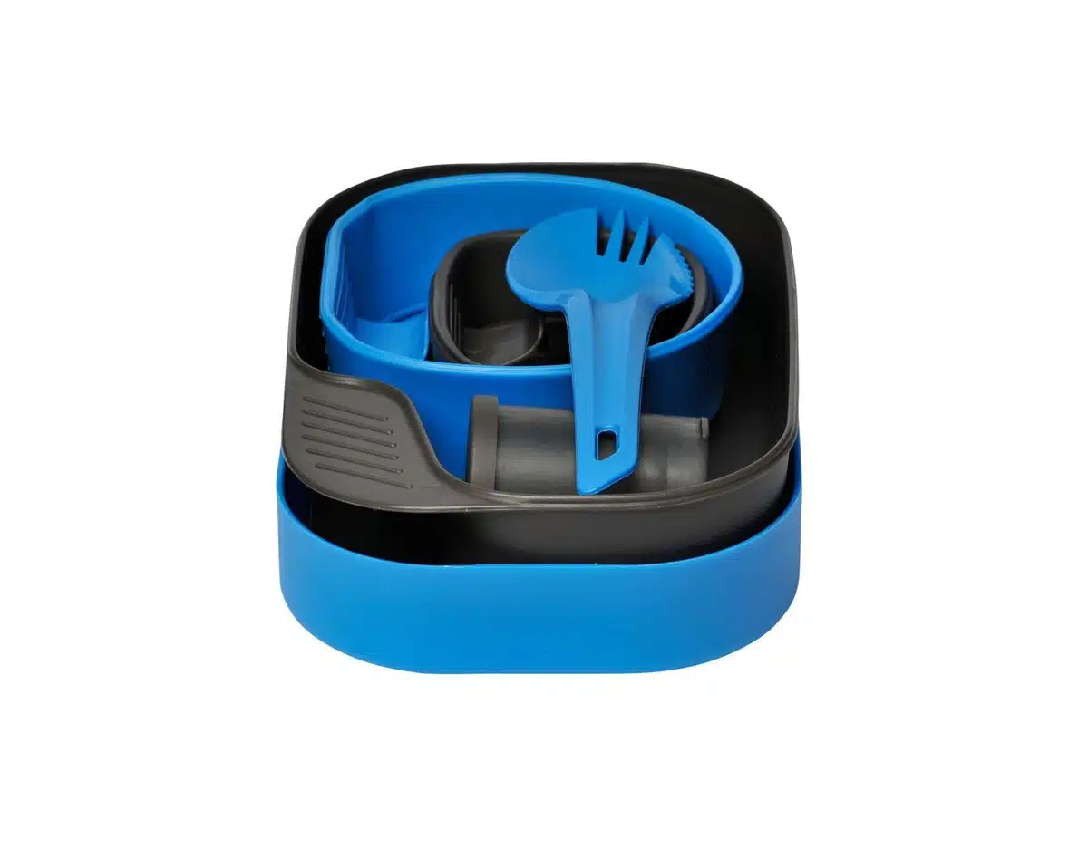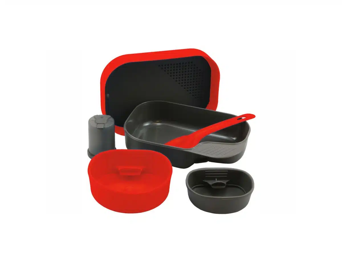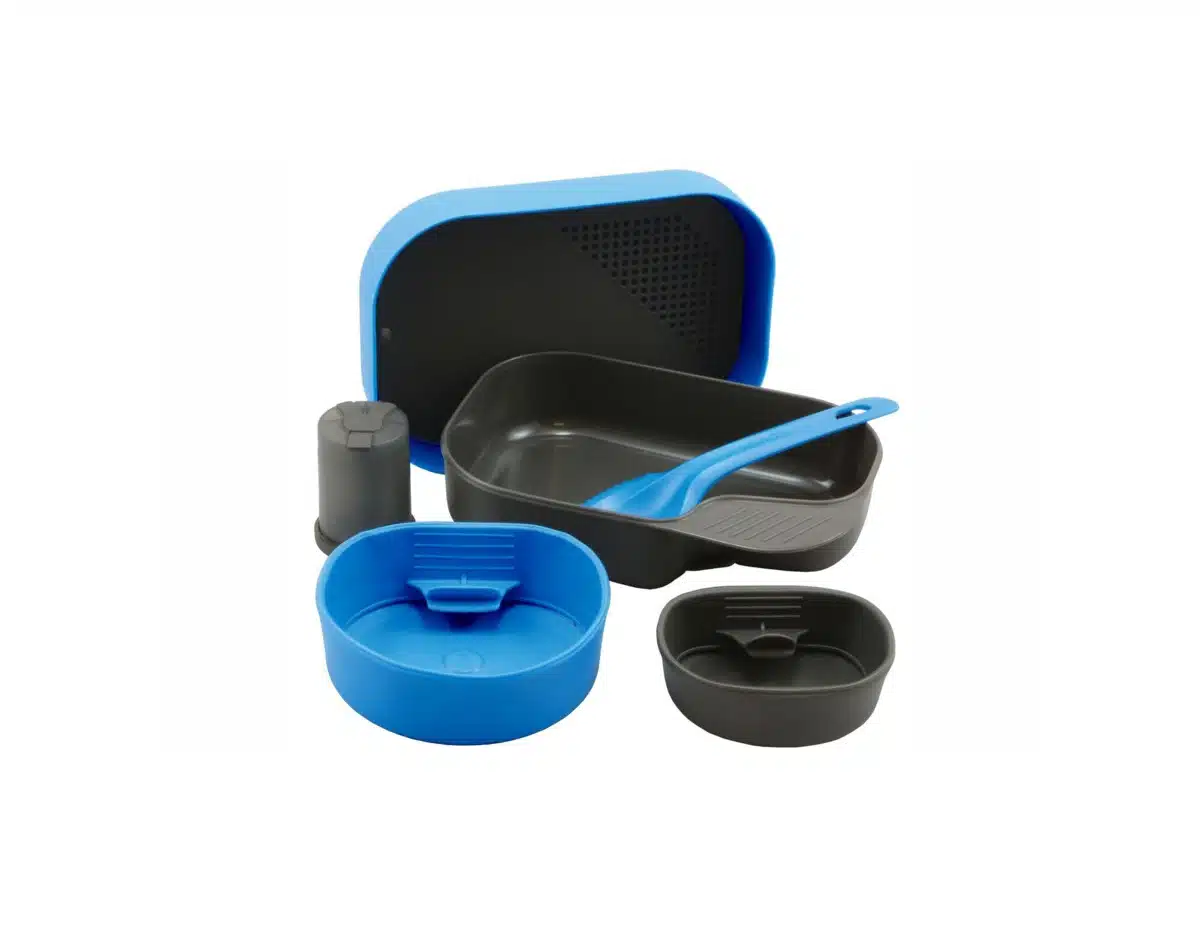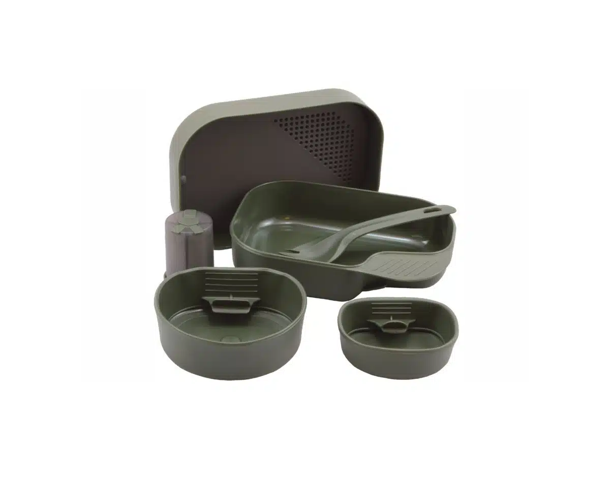 Wildo Tallrikslåda Komplett er en lett og praktisk matboks med alt du trenger til camping, jakt, fiske og fjellturen. Matboksen inneholder tallerken, krydderbøsse, to brettekopper i ulike størrelser, skjærefjøl samt spork (kombinert gaffel, kniv og skje).