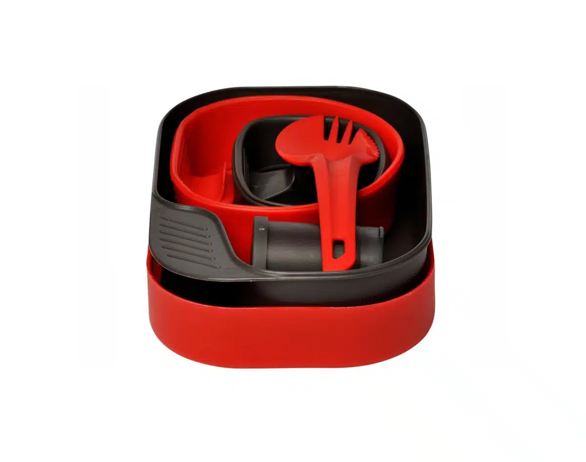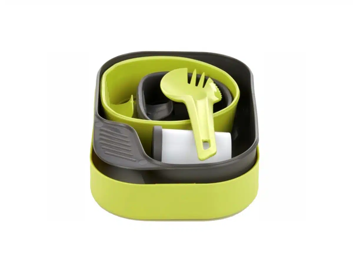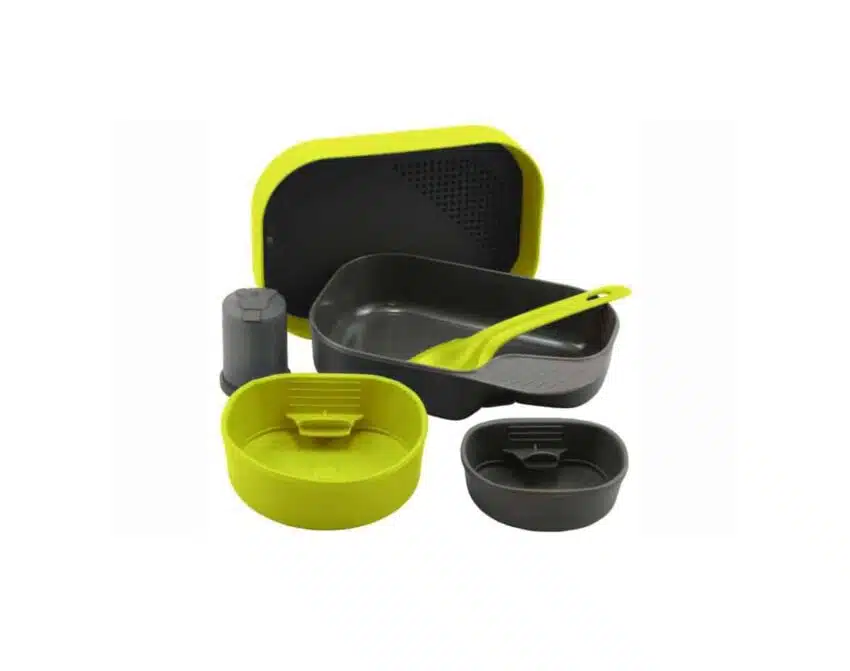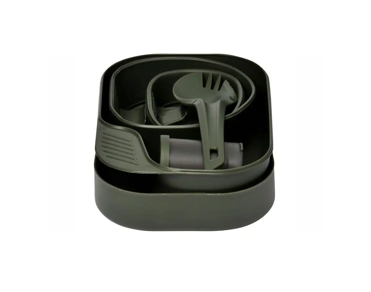 Wildo Tallrikslåda Komplett er en lett og praktisk matboks med alt du trenger til camping, jakt, fiske og fjellturen. Matboksen inneholder tallerken, krydderbøsse, to brettekopper i ulike størrelser, skjærefjøl samt spork (kombinert gaffel, kniv og skje).