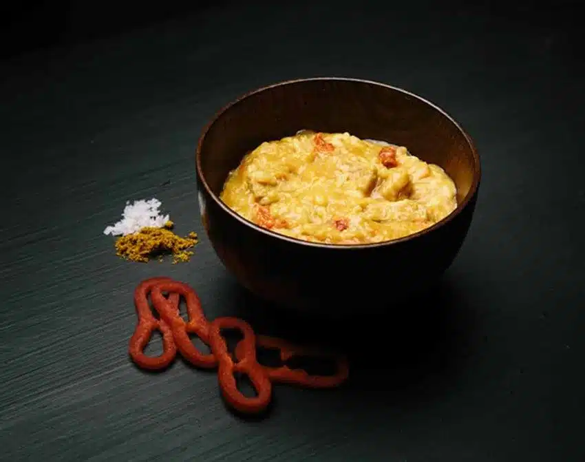 REAL Turmat Kylling karri er en klassisk gryte med ris og smakfull karrisaus i porsjonspakker, spesielt utviklet for deg som er glad i naturen og som har behov for et varmt, næringsrikt og fullverdig måltid. En sødmefull og heftig gryte med løk og ananas, for de som er glad i litt ekstra godt krydret mat.