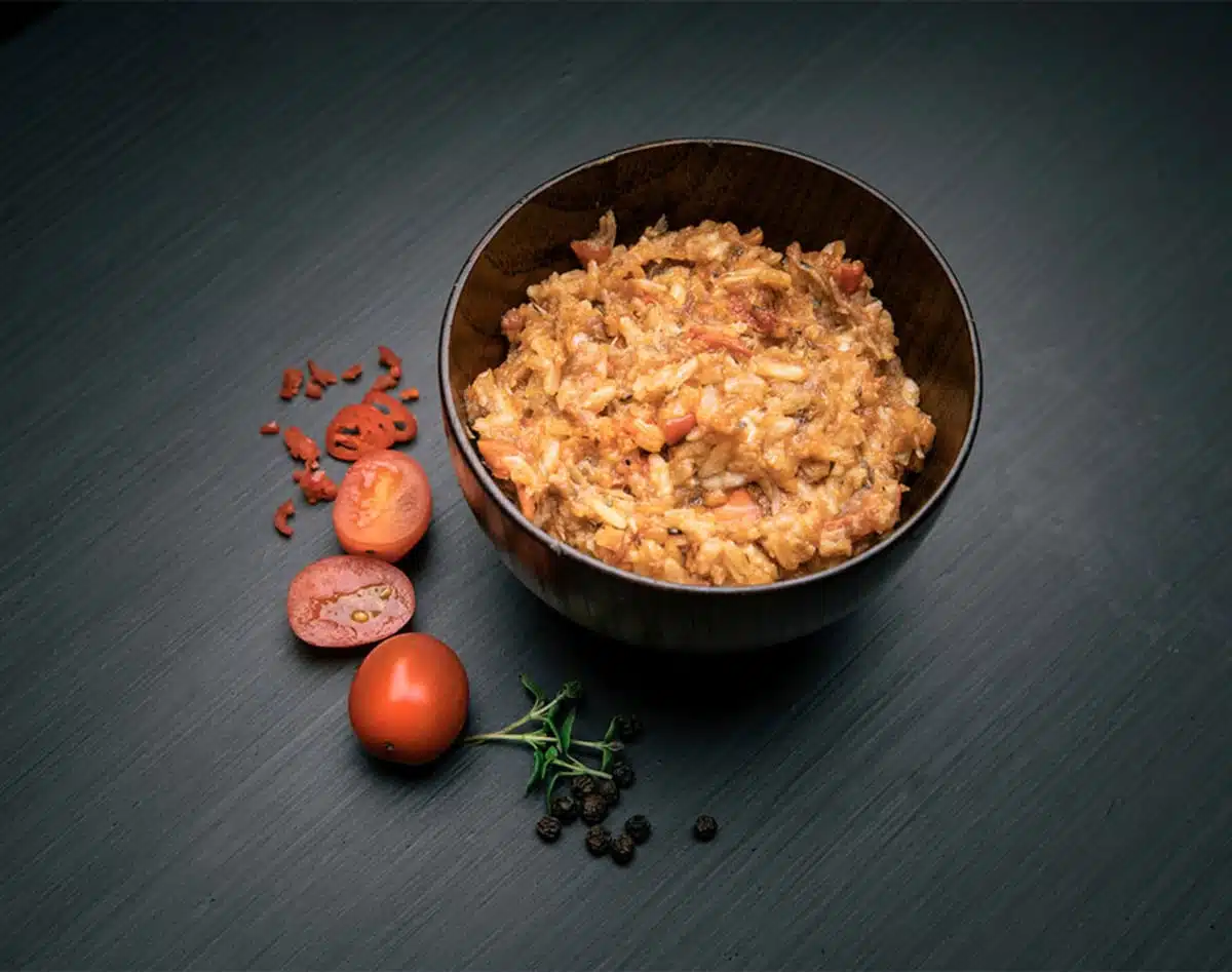 REAL Turmat Pulled Pork m/Ris, inspirert av det amerikanske kjøkken. Risbasert gryte med langtidskokt svinekjøtt, som deretter er revet i stykker. En helt unik rett, spesielt utviklet for deg som er glad i naturen og som har behov for et varmt, næringsrikt og fullverdig måltid.