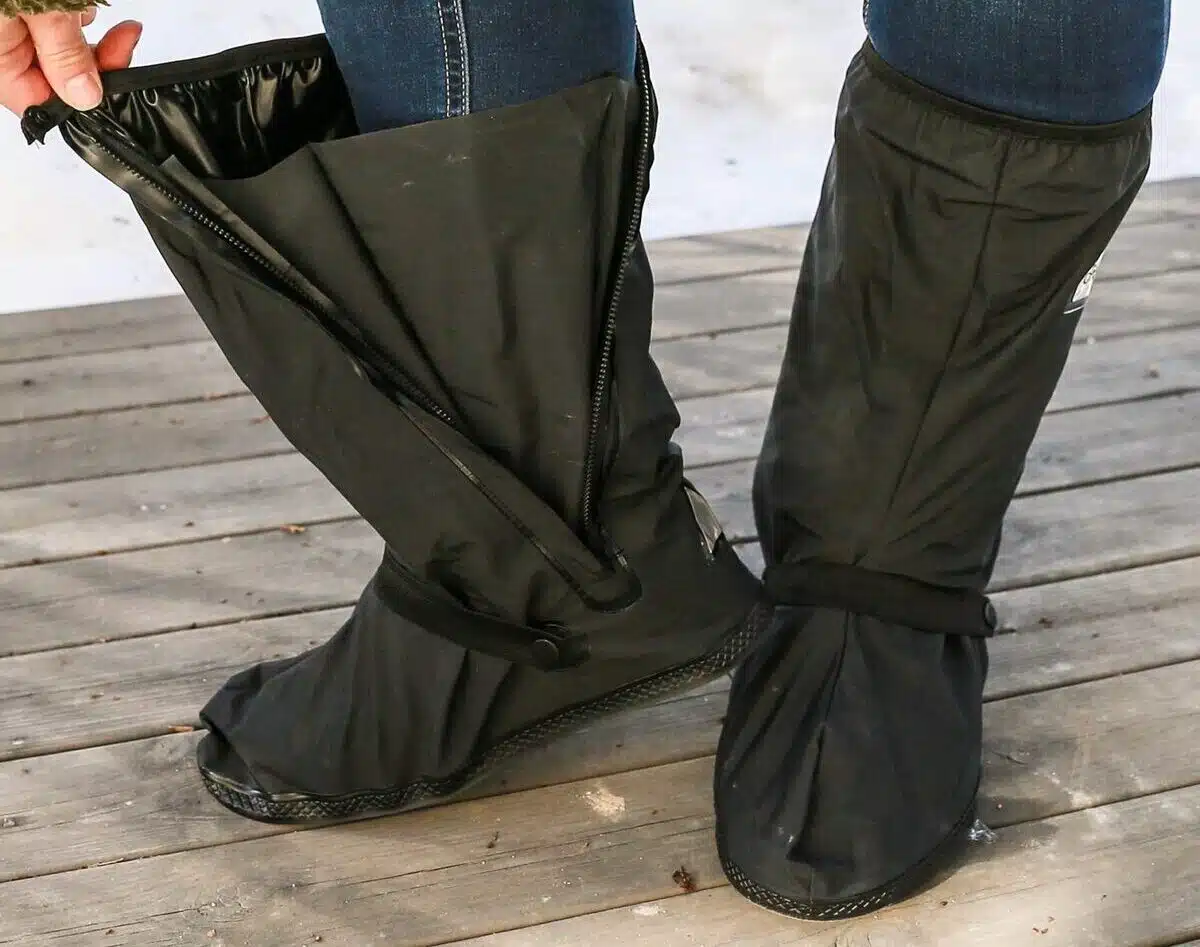 Vanntette skoovertrekk med glidelås for enkel bruk, samt knapp for bedre tilpasning over vristen. Ta enkelt på skotrekkene når du skal bevege deg gjennom våte partier som bekker, myr o.l. eller hvis det regner og du vil beskytte skoene mot fukt og søle.