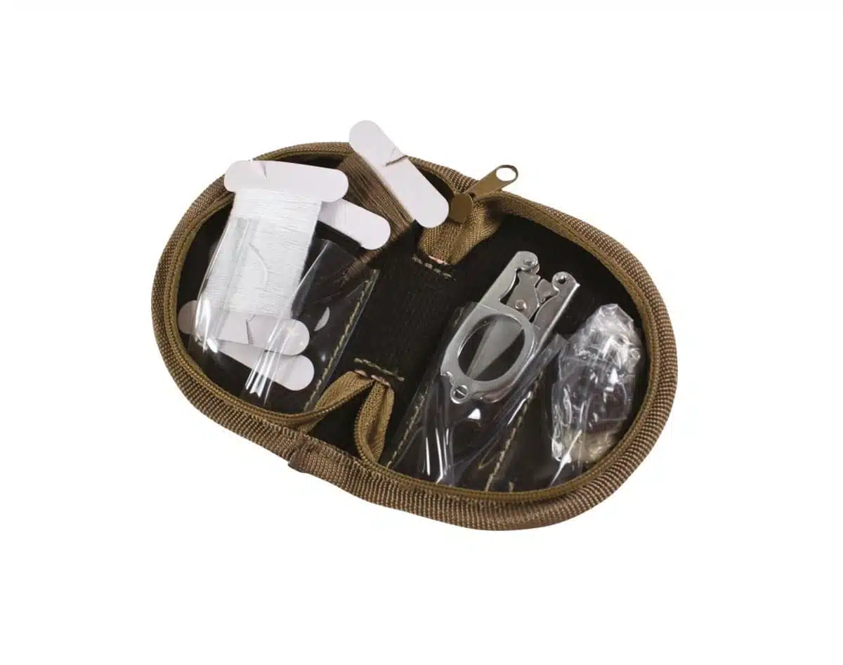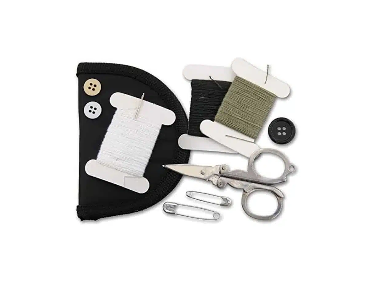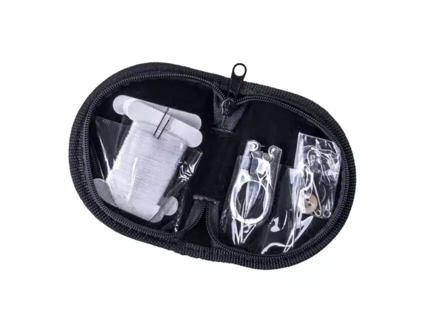Bushcraft Sysaker fra BCB inneholder det du trenger dersom uhellet skulle være ute, diverse knapper, synåler, sikkerhetsnåler, foldbar saks og 3 stk. sytråd i sort, grønn og hvit farge.