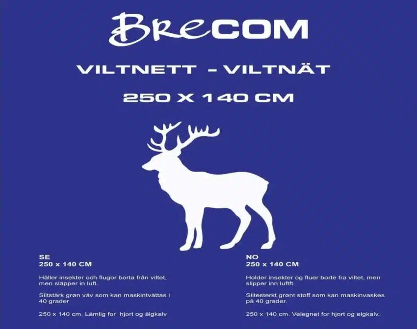 Brecom viltnett 250x140cm for hjort er en viltpose for hjort og elgkalv, en effektiv beskyttelse av slaktet mot fluer og insekter. For å beskytte viltet når det skal mørnes må man bruke viltnett som gjør jobben på en skikkelig måte.