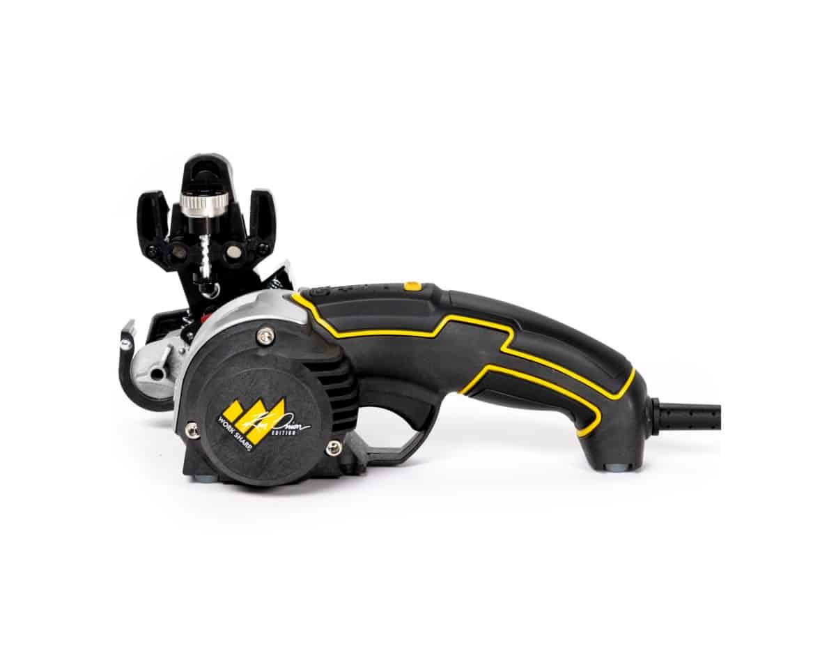 Slipeguiden har presisjonsinnstillinger og er foret med lær for å redusere faren for riper på knivbladet, mens den elektroniske hastighetskontrollen med LED-skjerm gir et bredt spekter av alternativer for slipeoppgaven som skal utføres. Med justerbar «eggvinkel», 7-trinns motorkontroll og en unik slipebåndteknologi sliper den lommekniver, jaktkniver, serraterte kniver, kjøkkenkniver, slaktekniver, sakser og et bredt spekter av plen- og hageredskaper på en rask og meget presis måte.