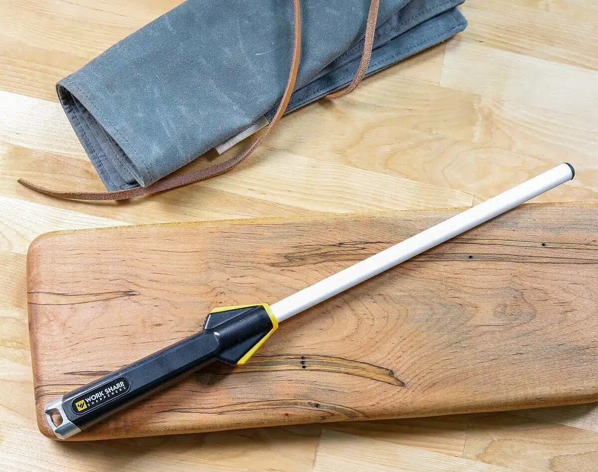 Work Sharp Keramisk Skjerpestål er designet for å passe inn i knivblokken din eller du kan feste en snor til håndtaket for å henge den på kjøkkenveggen eller på siden av grillen din, slik at den alltid er klar til bruk. Dette er løsningen for daglig vedlikehold, og for å holde alle knivene dine skarpe og klare til bruk.