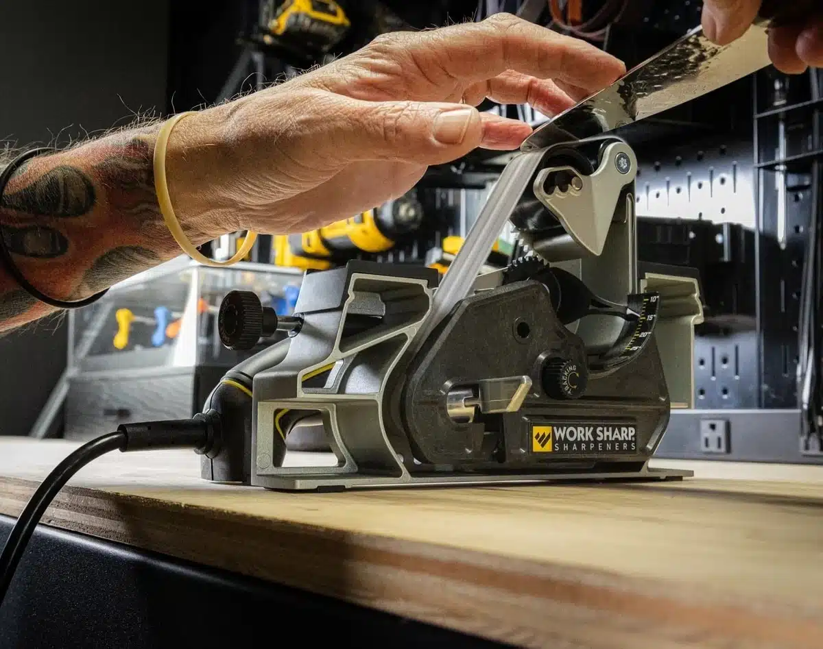 Work Sharp KO Slipeanlegg MK2 er et horisontalt anlegg for slipebånd designet for kniv forming, sliping og hone oppgaver. Anlegget er fullt justerbar fra 10 til 35° og bruker 1″x 18″ slipebånd i et bredt spekter av korninger.