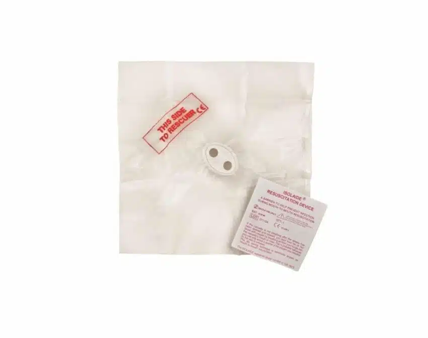 BCB Munn til munn maske med enveisventil, brukes ved hjerte og lungeredning. Masken plasseres over pasientens munn og det blåses inn gjennom enveisventilen.