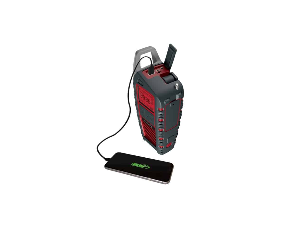 Nødradioen kan selvsagt også brukes til å lade opp mobilen din eller et nettbrett, det kan gjøres via USB. Du kan bruke Bluetooth til å spille av musikk fra mobilenheten, eller du kan spille av gjennom AUX-in. Du kan også lytte til musikk via hodetelefoner (jacktilkobling).