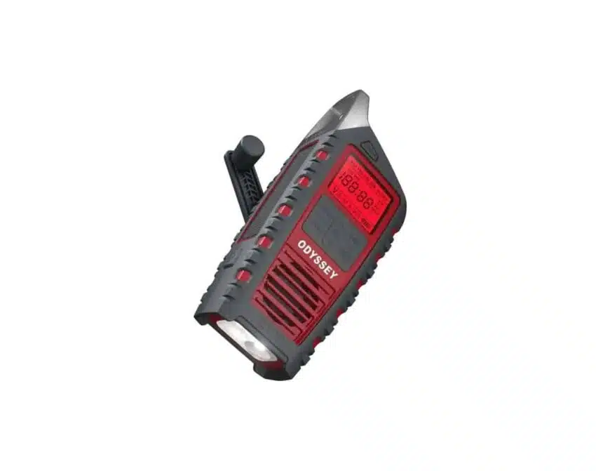 Nødradioen har digital tuner og display, og trenger du å bruke den i en nødsituasjon, kan lommelykten brukes til å sende kraftige, røde lyssignal (SOS) og alarm. Eton Odyssey DAB+ kan også brukes som vekkerklokke, og er selvsagt sprutsikker (IPX4), slik at den fungerer optimalt under alle forhold, også i snø, sludd og regnvær.