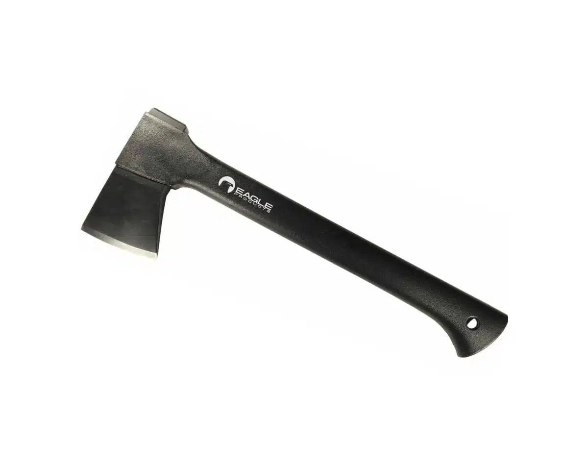 Eagle Products Villmarksøks er en flott og solid øks med vridningssterkt glassfiberskaft. Øksen har et kraftig hode i rustfritt stål som gir en velbalansert, lett og solid øks for tur- og hyttebruk. Slire med beltefeste og hempe for oppheng følger med.